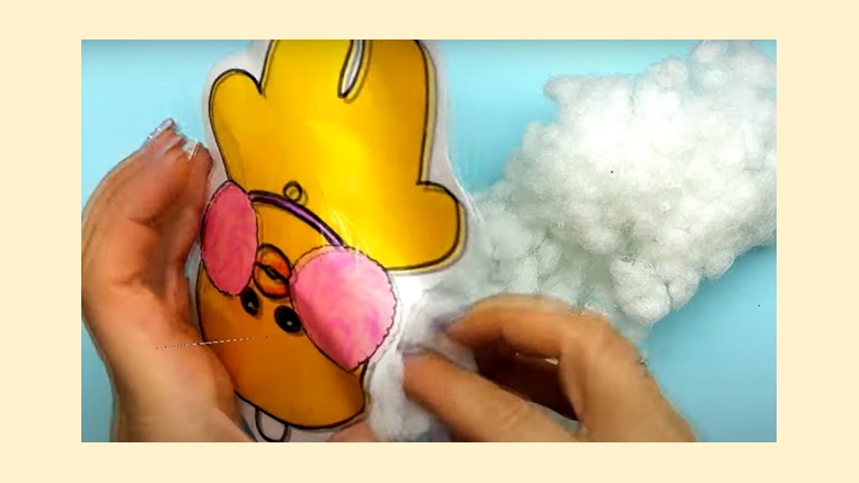 - Поместить внутрь наполнитель, отверстие заклеить.