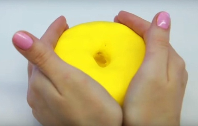 - Готовый лизун промыть холодной водой и обтереть салфеткой.