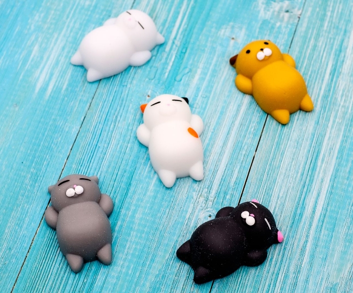 Сквиши маленьких размеров могут быть всегда под рукой. Например, их можно наклеить с помощью супер-клея на тыльную сторону смартфона, а когда настанет минута стресс, понажимать на приятную субстанцию. Предлагаем сделать сквиши в виде котиков.