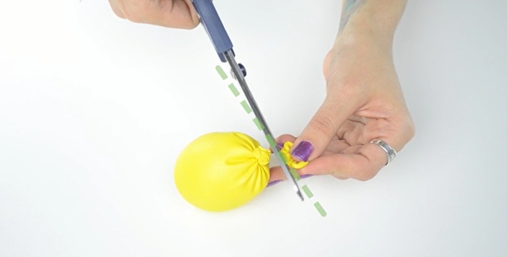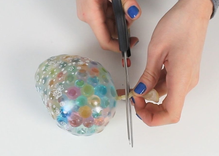 Шарик должен быть заполнен приблизительно на 7 см. Карандашом пропихните наполнитель, если он застрял в горлышке.