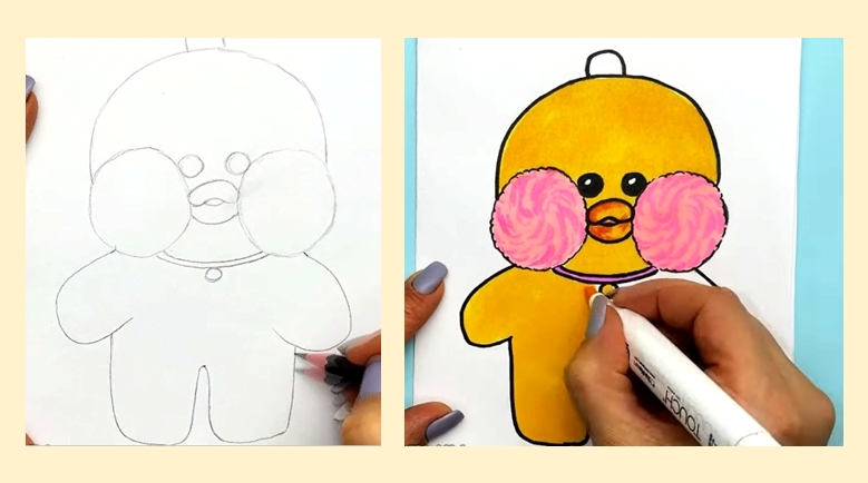 Сложить лист А4 пополам и нарисовать уточку карандашом, потом разукрасить.