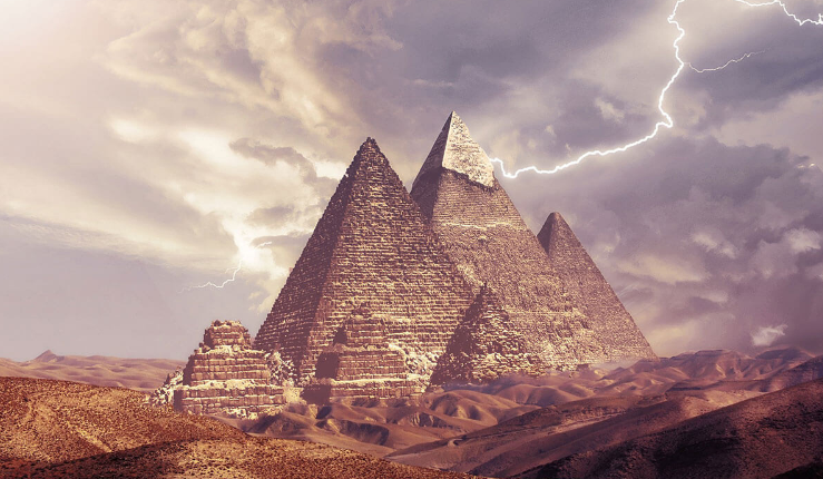 Пирамида Хеопса в Египте строились два десятка лет и являлась самым первым небоскребом на земле. Она состоит из 2 300 000 кам. блоков, общим весом — 7 млн тонн. Сегодня ее высота — 136, м. Пирамиду поменьше построил сын Хеопса, Хефрен, а третью, еще меньше, фараон Микерин.