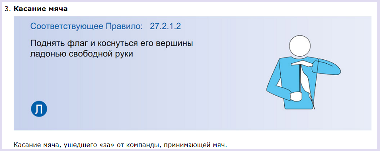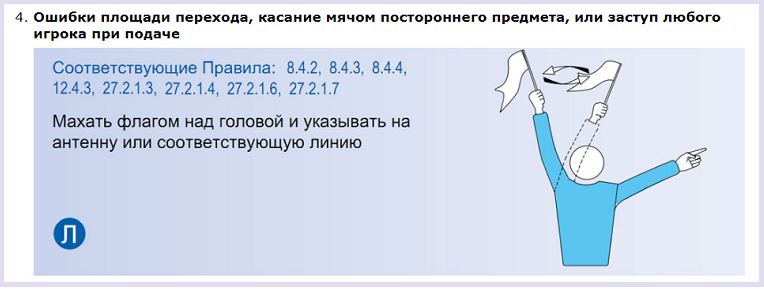 Знаки/жесты подаются также и линейными судьями. Для этого используются флажки. Касательно линейных судей информация по ссылке «Правила мини волейбола»