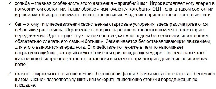 Изначально, играющему нужно освоить правильные стойки. Выделяют пять видов: стартовую, устойчивую, основную, неустойчивую.