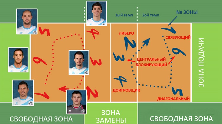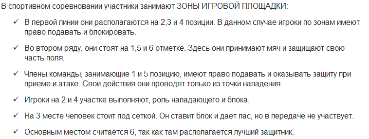 При размещении игроков учитывается зональность поля. У каждого члена команды есть своя позиция, зона для ведения игры.