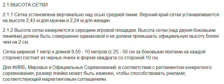 УРОВЕНЬ СЕТКИ на поле варьируются по возрастной категории игроков.
