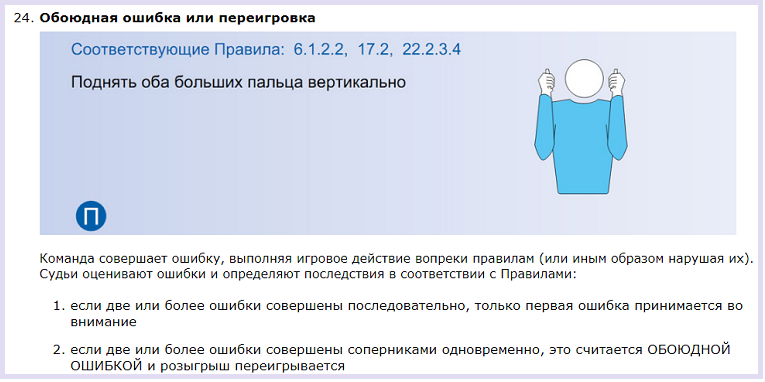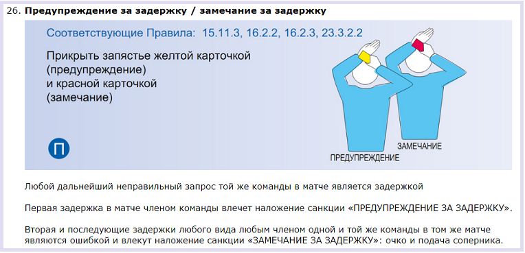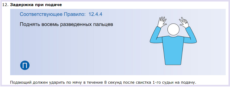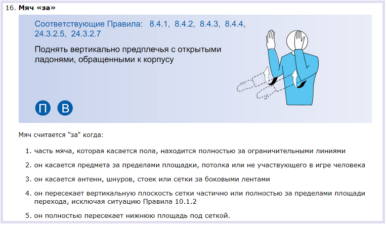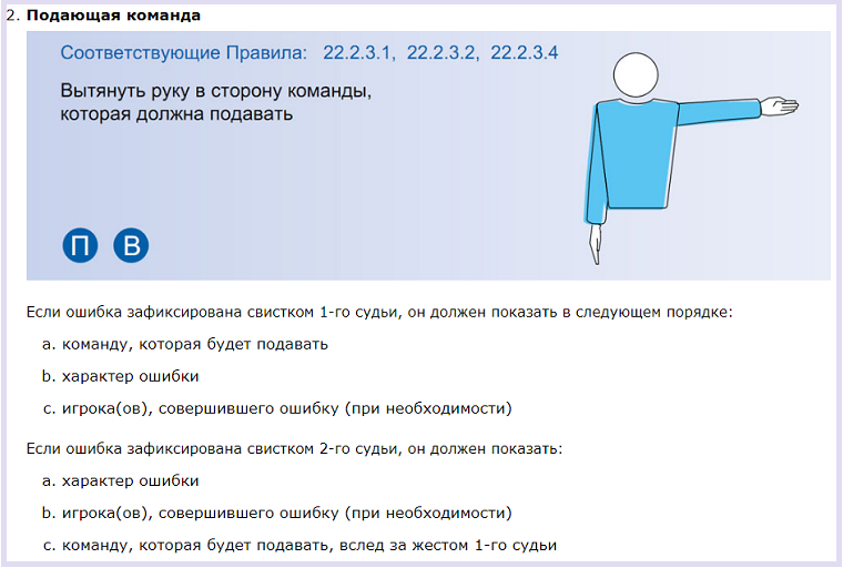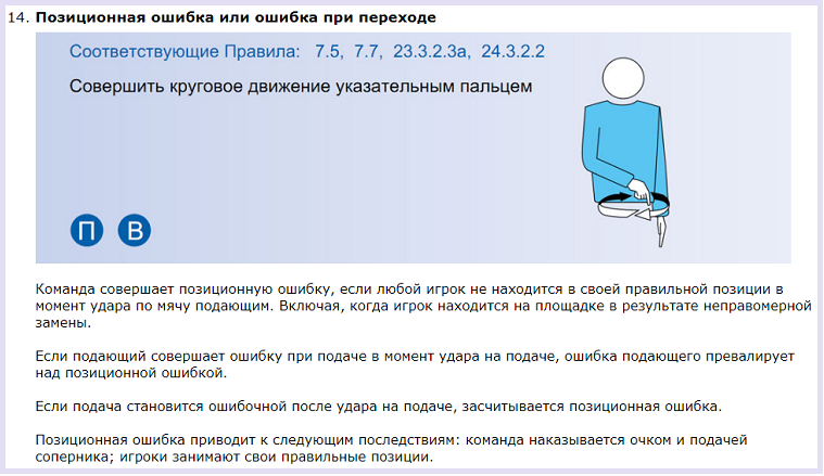 Судьи используют условные обозначения, установленные Всемирной волейбольной федерацией.