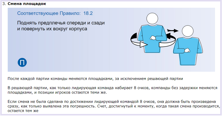 - Если он приземлился без прикасания на противоположном поле, подающая команда получает право перемещаться по ходу часовой стрелки. Подают все члены команды.