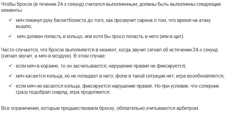 Следует отметить, что до 1954 г., по правилам НБА, команде можно было владеть мячом в момент атаки столько, сколько ей было нужно. Зрителю не интересно было смотреть на игру. Именно поэтому, правила были пересмотрены, а на атаку отведено ровно 24 с.