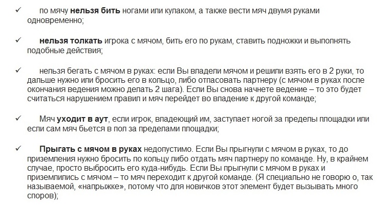 - Вбрасывание мяча проводится за 5 с., это же касается и штрафного. Дольше держать мяч в одних руках не положено.