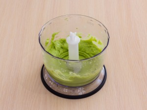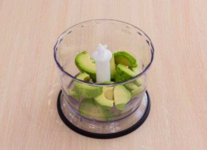 Почистите спелый авокадо , косточку удалите, добавьте лимонный сок, посолите и отправьте в блендер.