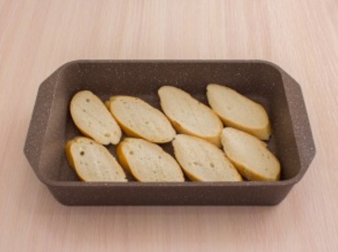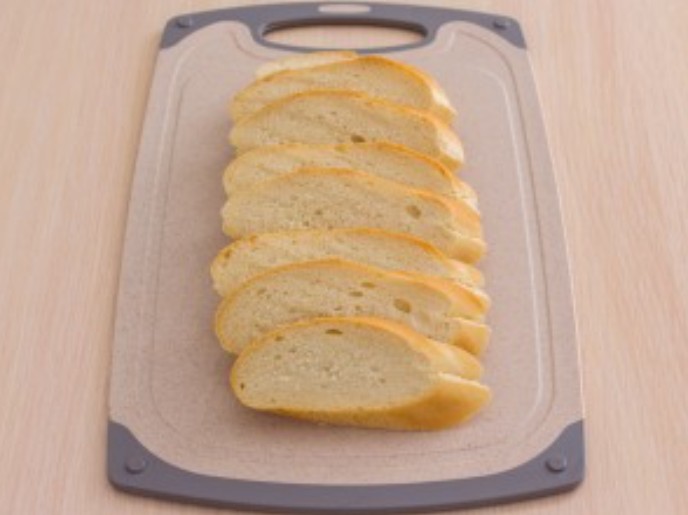 3. Смазать получившейся смесью каждый кусочек хлеба.