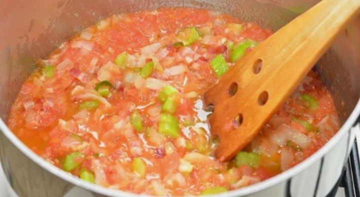 Бульон для томатного супа можно использовать любой, а если вы придерживаетесь вегетарианской диеты, приготовьте его на воде или на овощном бульоне.