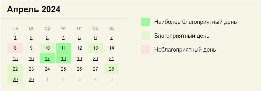 - Лунный календарь на апрель 2024 года благоприятные дни