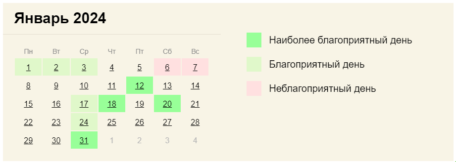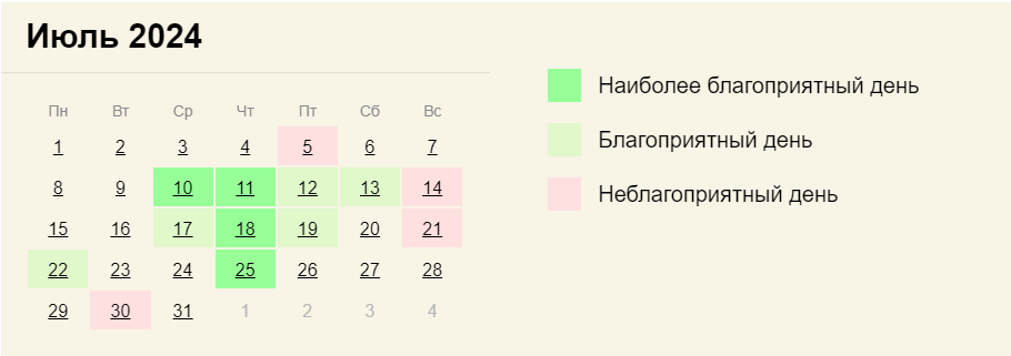 - Дни исполнения желаний: 1-е, 7-е и 11-е сутки лунного календаря.