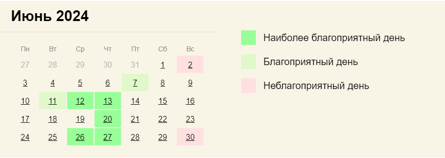 - Лунный календарь на июнь 2024 года благоприятные дни