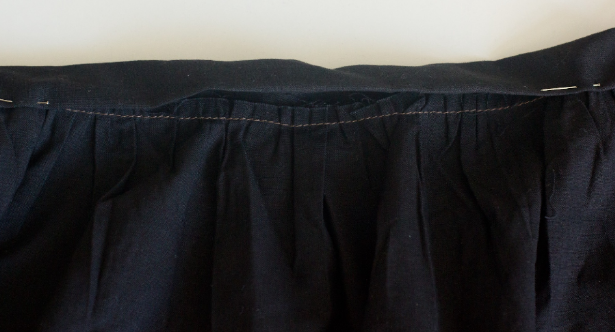 После этого вам нужно сделать на юбке сборку удобным для вас способом. Когда закончите, обязательно проверьте, чтобы полученный обхват совпадал с длиной пояса.