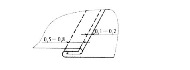 Затем для переда и спинки нужно вырезать обтачку. Ширина подойдет в пять сантиметров. Подверните обтачку и край переда. Соедините и прострочите на один сантиметр от края. Также поступаем и с деталью спинки.