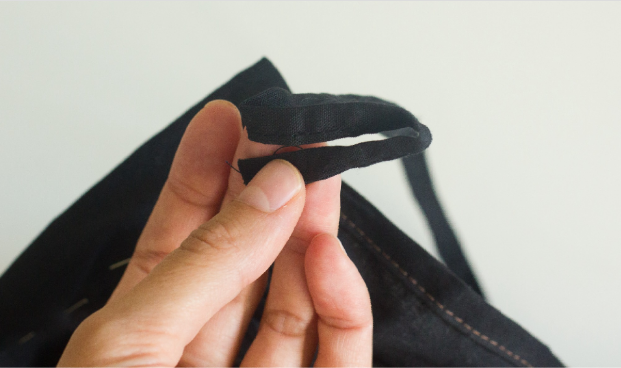 Затем сделайте петлю для фиксации концов юбки. Возьмите завязку и сверните как показано на фото.