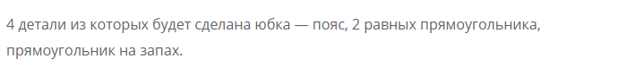 Ткань юбки придется разделить на несколько частей: два прямоугольника по семьдесят пять сантиметров и один прямоугольник запаха в тридцать семь сантиметров.