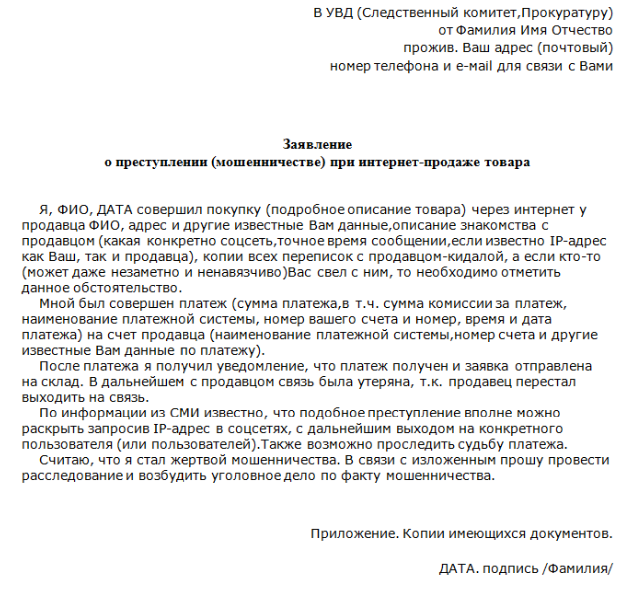 • В основной части опишите факт мошенничество, указав дату происшествия, место и время. Постарайтесь подробно описать инцидент.