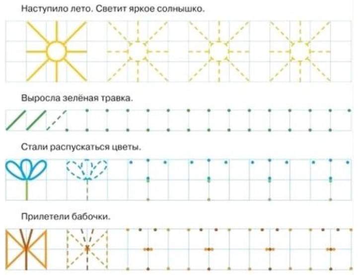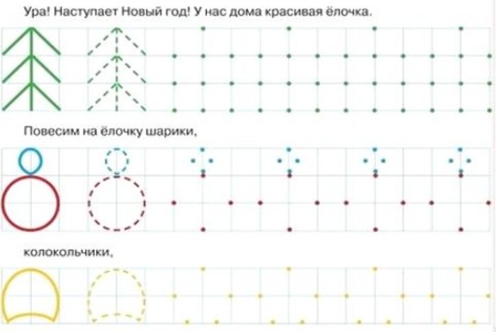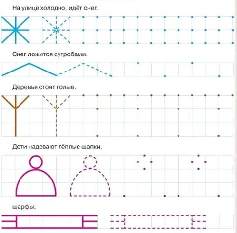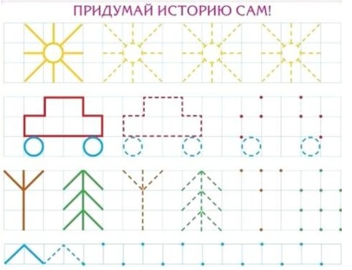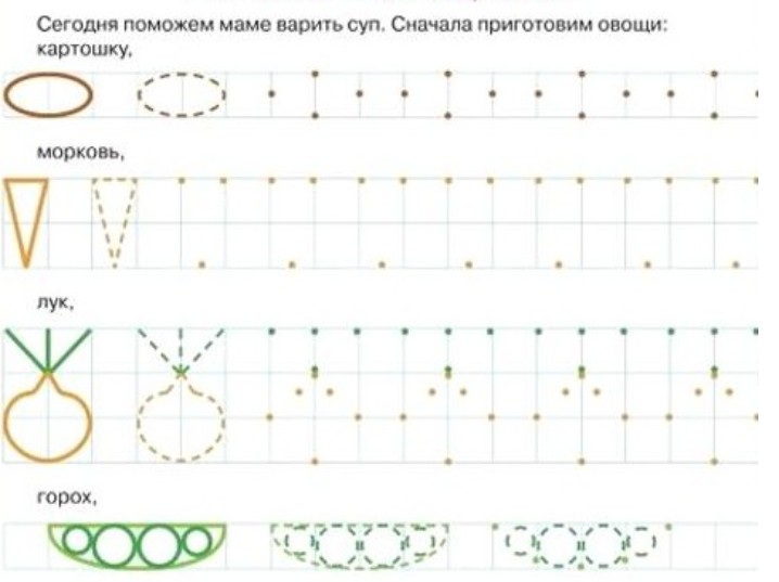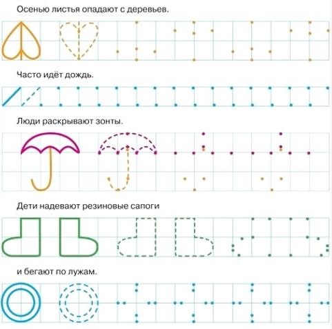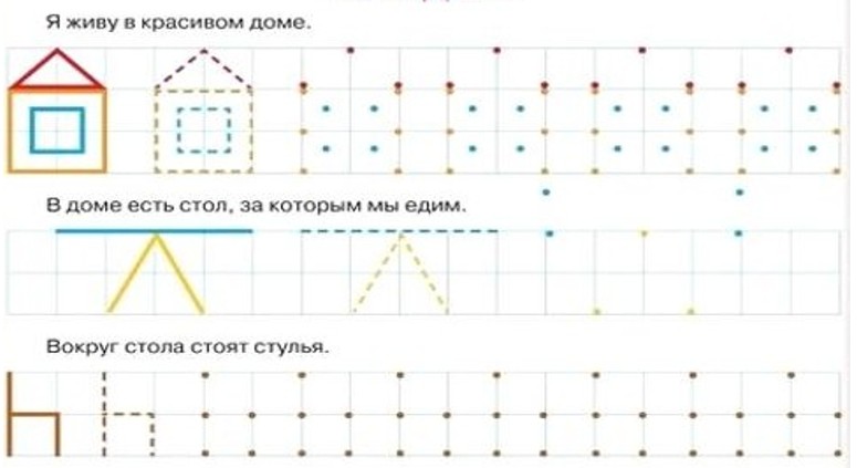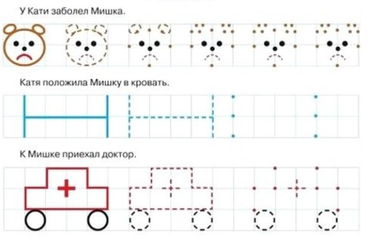 С помощью задания — повтори рисунок по точкам, вырабатываются первые навыки письма, усидчивость и внимательность.