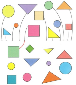 Соединяя фигуры по предложенному образцу, у ребенка формируется образно-логическое мышление.