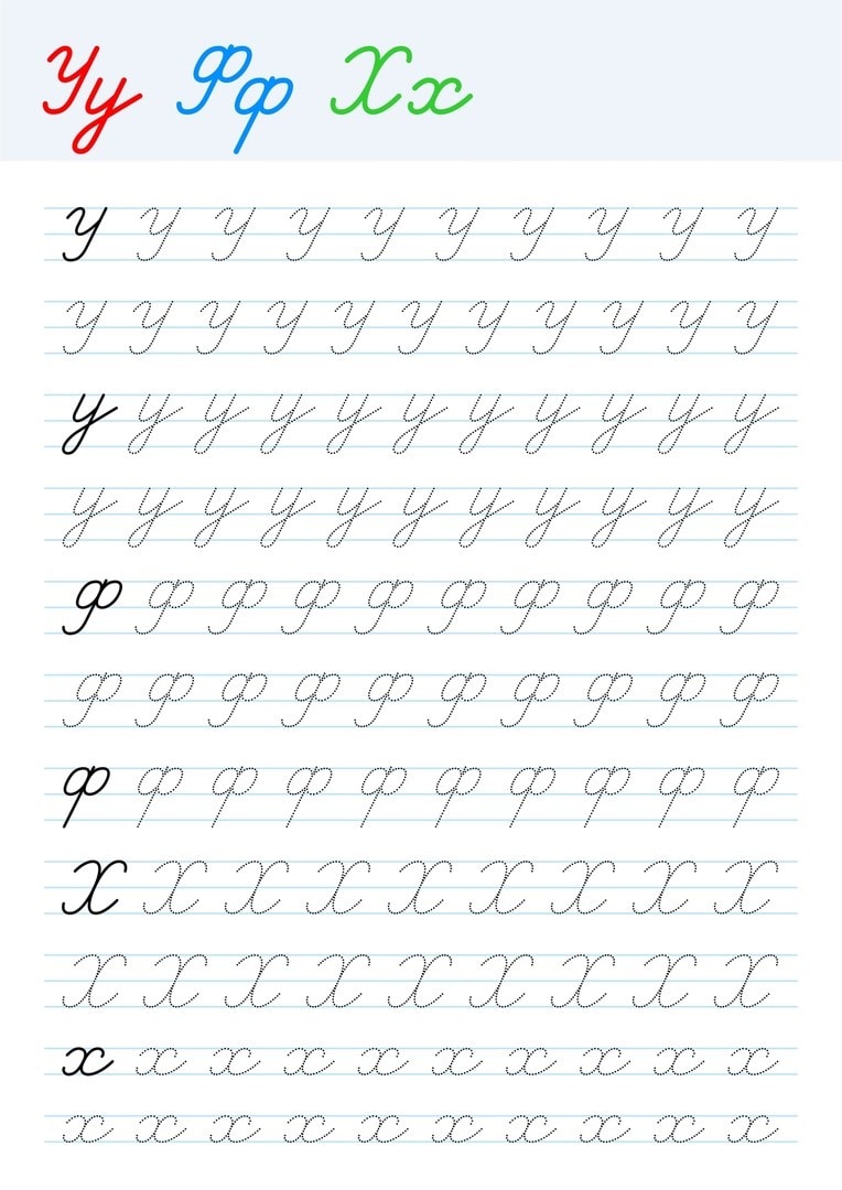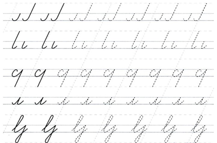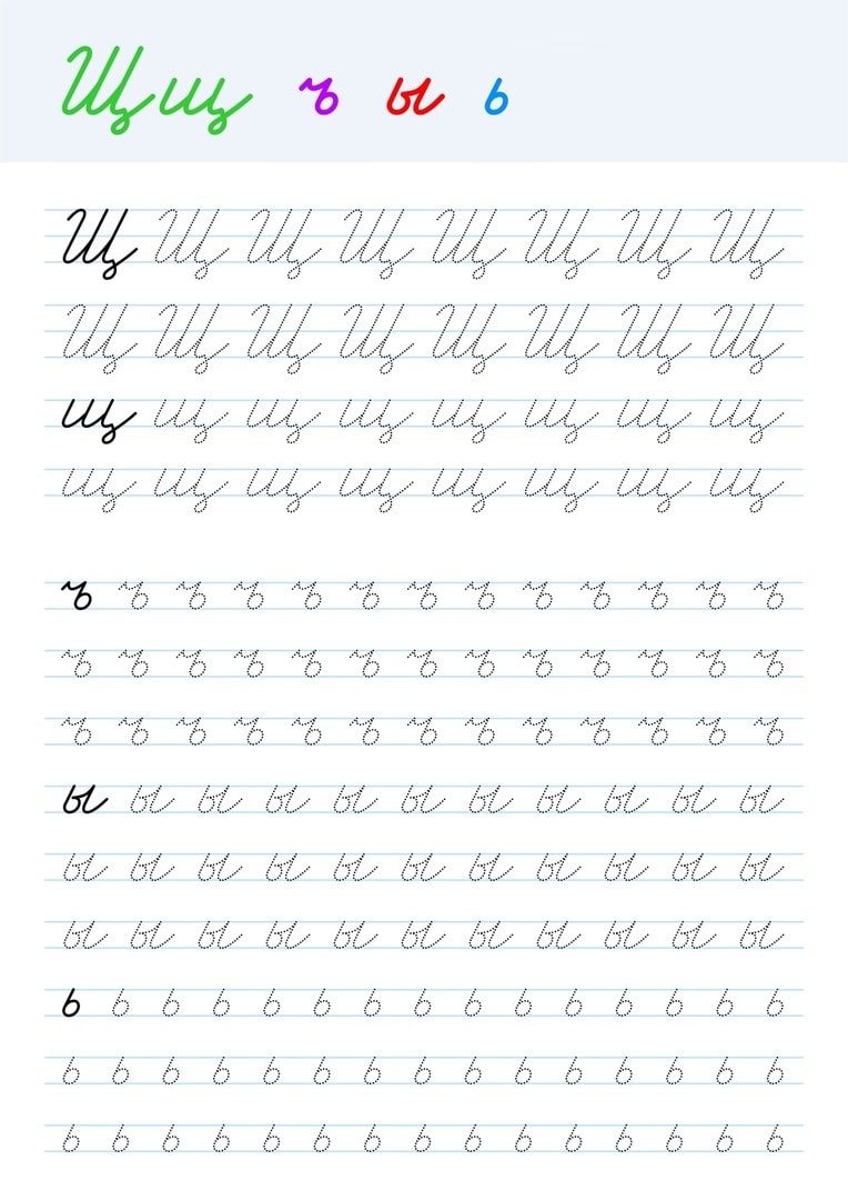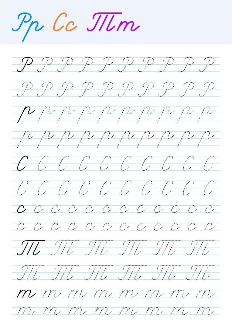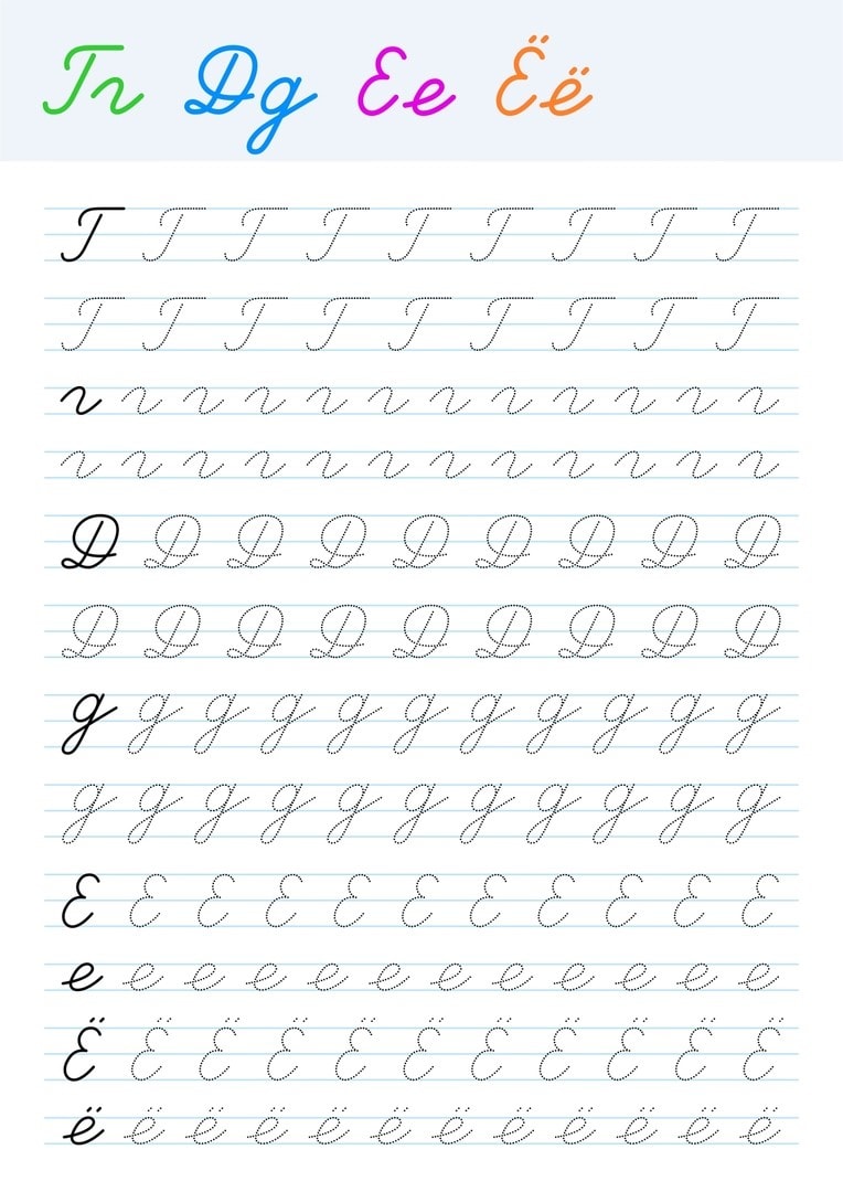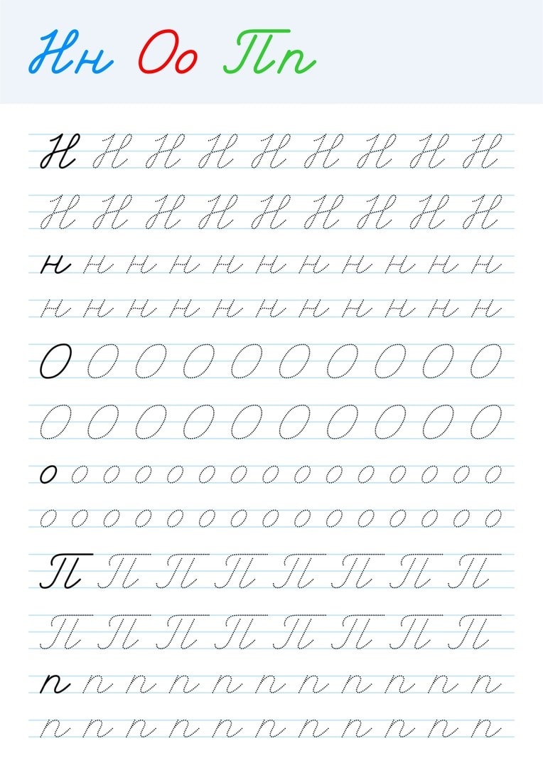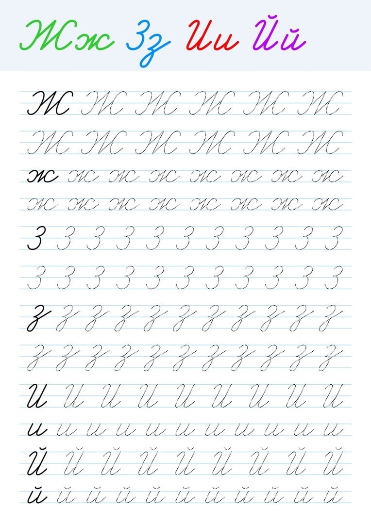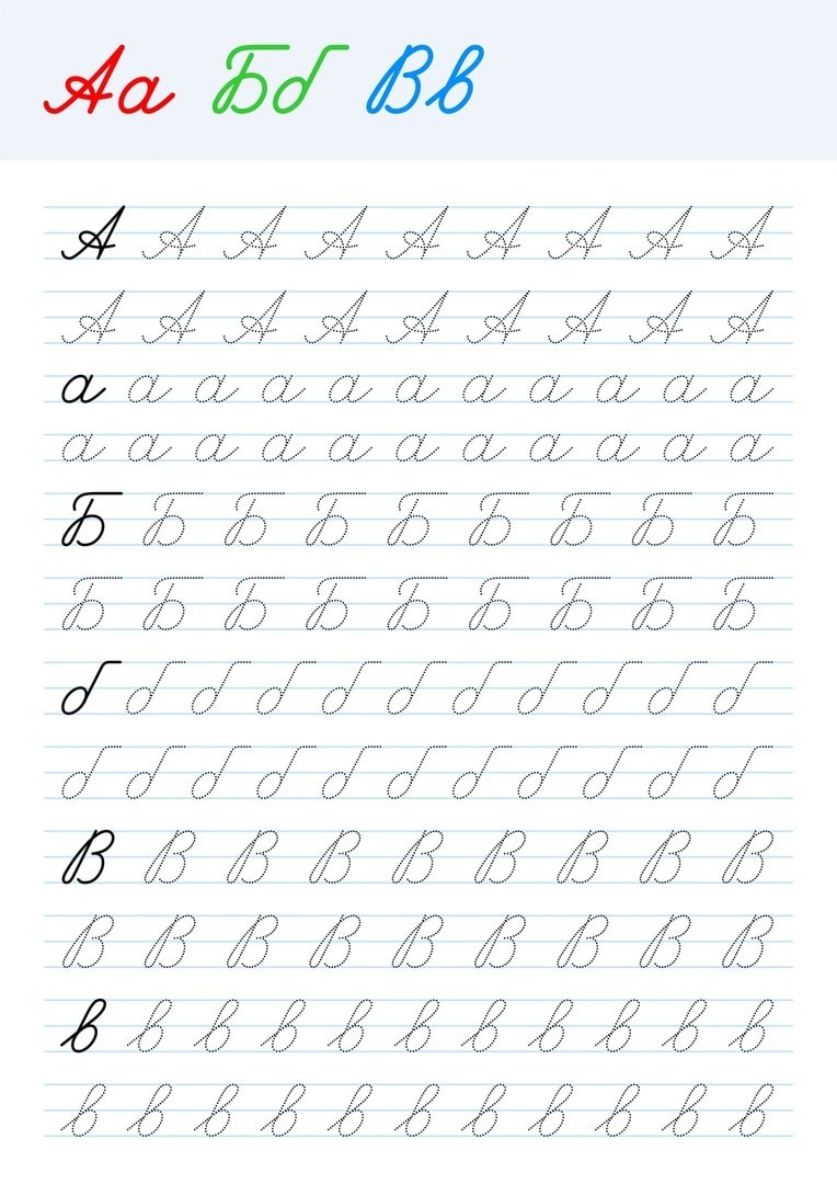 Даже если будущий ученик уже знает все буквы, ему необходимо научиться их красиво писать. Для начала можно воспользоваться предложенными шаблонами, по которым их нужно обвести. Подскажите ребенку, с чего начинать выводить каждую букву.