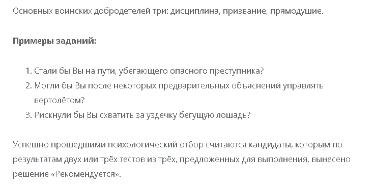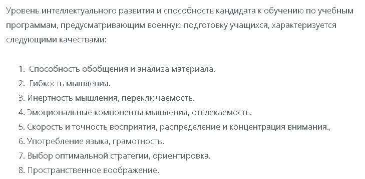 Так же, проверяется готовность продолжить обучение в военизированных учебных заведениях: