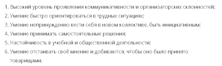 В условиях обучения с проживанием в кадетской школе-интернате, необходимо обладать следующими качествами: