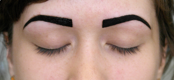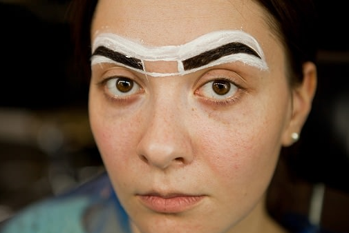 • Область бровей тщательно проскрабить и нанести жирный крем вокруг намеченного контура, избегая попадания на сами брови.