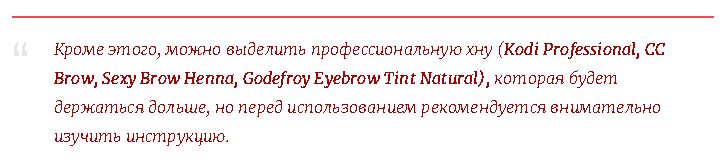 Хна является натуральным средством и представляет из себя измельченные в порошок листья лавсонии. Приготовить краску из хны для бровей достаточно просто, нужно только перемешать ее с кипятком либо (в зависимости от рецептуры) прохладной водой. К недостаткам можно отнести скромную палитру цветов — от золотого до черного шоколада и быстрое исчезновение эффекта. Чтобы его поддержать, рекомендуется бережное ухаживание.