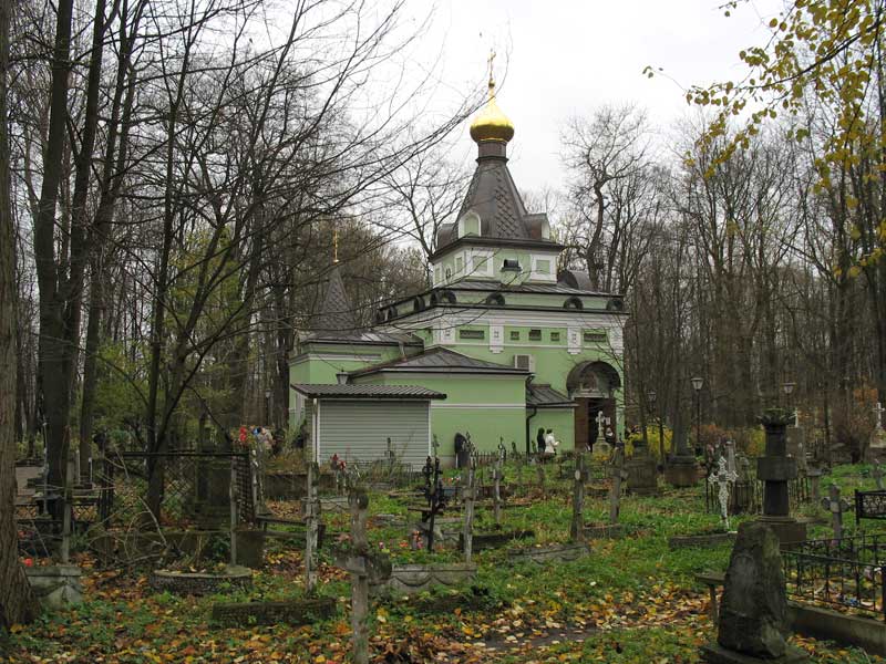 Часовня Ксении Петербургской расположена на Смоленском кладбище.