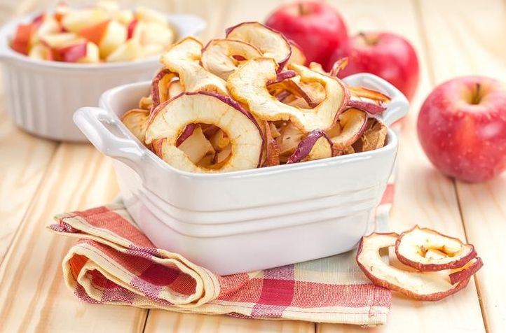 Самый доступный сухофрукт — яблоки, которые являются источником железа — в 100 граммах его содержится 43% от суточной нормы. Так же в их составе — клетчатка (48% от суточной нормы). Их употребление помогает при заболеваниях, которые связаны с пониженным гемоглобином. Но, в сушеных яблоках полностью отсутствует витамин «С», так как во время сушки происходит их обезвоживание.