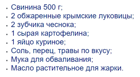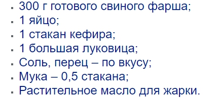 рецепт котлет-оладьев из свинины 2 вариант «экономный»