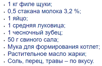 Далеко не каждая хозяйка любит возиться со щучьими котлетами. Дело в том, что само мясо этой рыбы довольно жесткое и суховатое. Приготовить таящие во рту котлеты из щуки можно лишь подвергнув его определенной обработке, сдобрив вкусными специями и смягчающими ингредиентами. Для нашего рецепта понадобится: