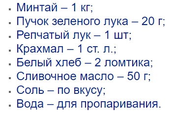 Рецепт вкусных котлет из минтая, рецепт 1 вариант