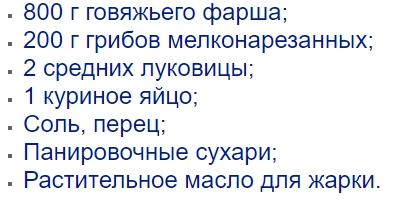 Рецепт 2. котлеты с грибами