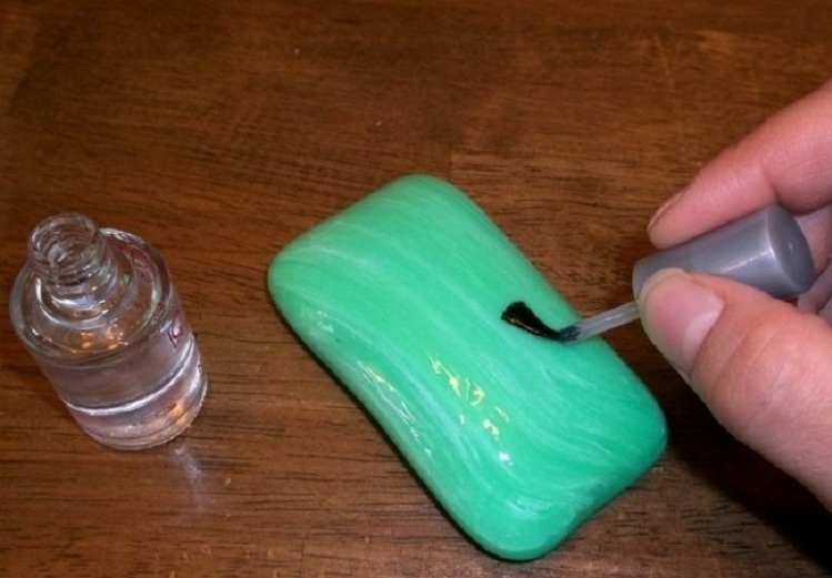 Варианты с мылом работают безотказно. Вам заранее нужно прикупить пузырек с бесцветным лаком. Когда дома никого не будет, обработайте им кусковое мыльце. Идеально если оно не новое, а пользованное дня два. Готовиться нужно заранее.