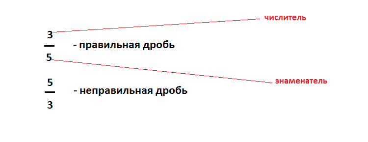 - Если не выделяется целое число, верхняя часть меньше нижней, значит мы получили правильную дробь.