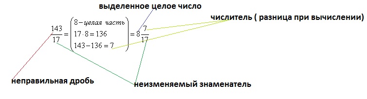 Изо всех неправильных дробей в заданиях можно выделить целые числа и остаток. Для этого проводим следующее действие:
