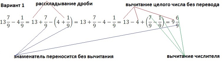При выполнении математических заданий, пятикласснику изначально необходимо будет из смешанного числа сделать неправильную дробь. После этого выполняется суммирование, либо вычитание.