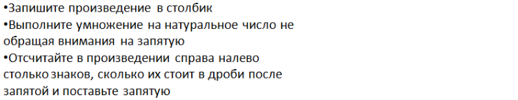 Вспомните, как вы умножаете натуральные числа, точно таким же способом и находят произведение десятичных дробей. Сначала разберемся, как умножить десятичную дробь на натуральное число. Для этого: