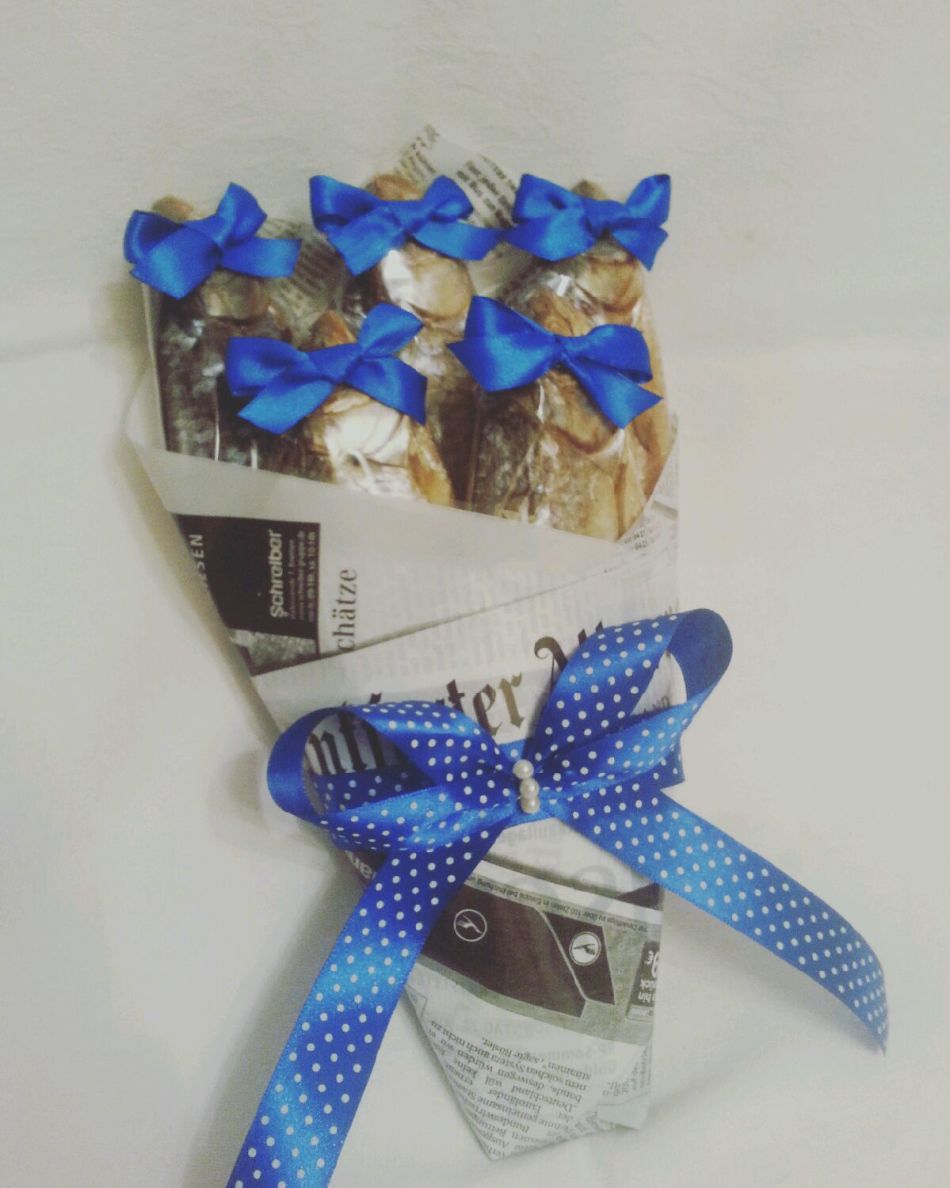 Дело в том, что подобные букеты начинали появляться еще в СССР. В пивных ларьках всегда присутствовала бумажная пресса и именно в нее оборачивали купленную тарань. Сформированные газетные кульки уже тогда выглядели как букет, хоть и не совсем завершенный.