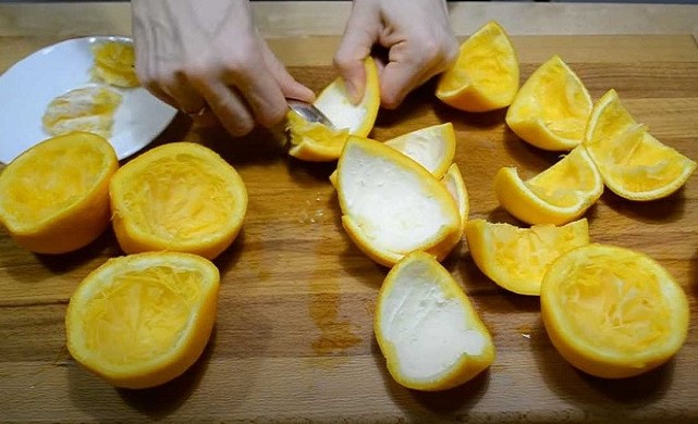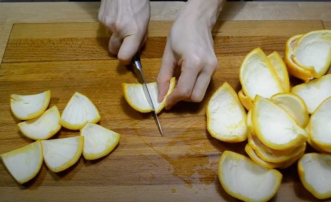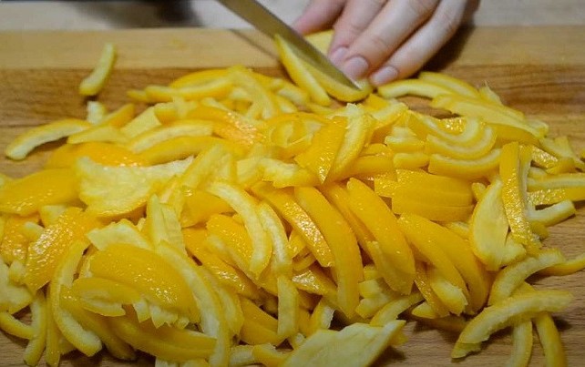 - При этом, снимая только желтую часть кожуры, цукаты получатся слишком тонкими.