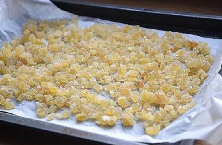- На немного мягкие и липковатые цукаты насыпать сахарной пудры, перемешать, разложить на блюдо и оставить на несколько дней, чтобы завершился процесс кристаллизации.