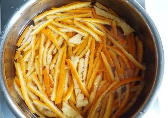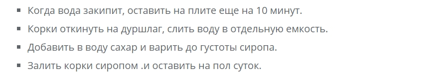 - Далее корки проваривают еще два раза с добавлением сахара.