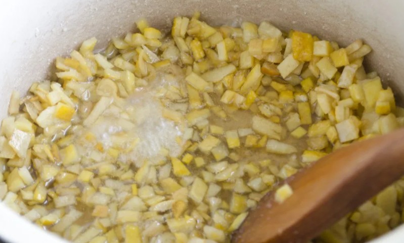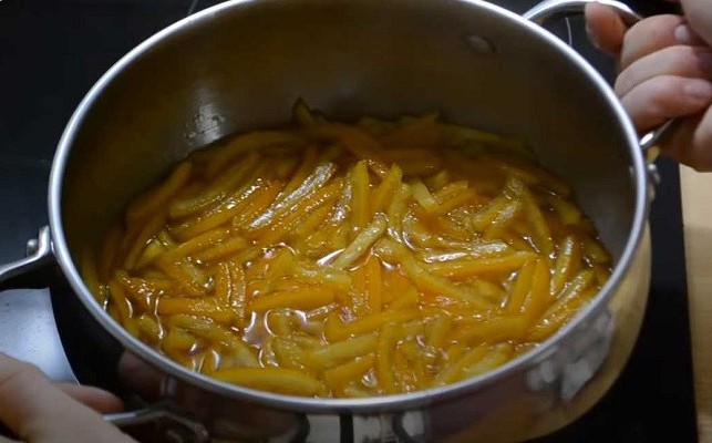 Для заготовки цукатов можно воспользоваться традиционным или экспресс-методом. На второй уходит больше времени, зато из корок уходит горечь и терпкий привкус. Принцип приготовления довольно простой, сначала корки варятся в сахарном сиропе, не допуская подгорания сахара, иначе цукаты приобретут горький привкус. Кастрюлю рекомендуется брать побольше с толстым дном, чтобы избежать выкипания сиропа и подгорания.