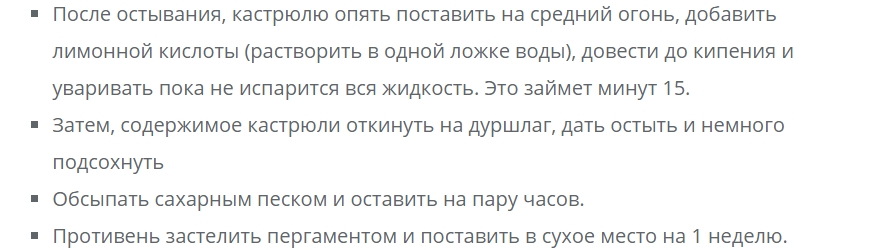 - Процесс варки занимает около 50 минут, цукаты должны впитать всю жидкость.