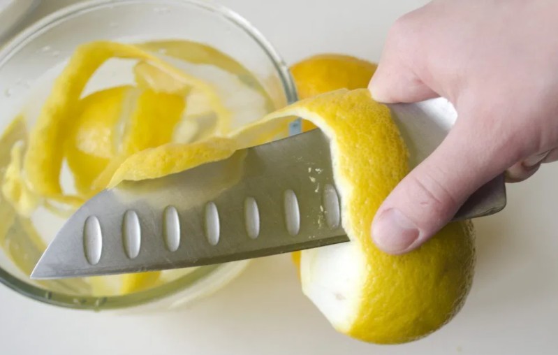- Шкурка должна срезаться таким образом, чтобы осталось немного белой части.
